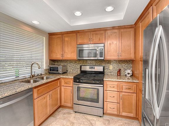Welcome home to this beautiful single level Casa Violetta Model in the Casta Del Sol Fiesta tract. This home is situated on a wide private cul-de-sac street with only seven homes. Many upgrades including remodeled kitchen with granite counters, newer cabinetry and stainless steel appliances, newer matching cabinetry in both bathrooms, recessed lighting in the kitchen and living room, newer faucets and lighting in the master bathroom, and a new American Vision double paned window in the master bedroom at the front of the home. Secondary bedroom has double sliders to a private side yard. Living room is very large with vaulted ceilings, fireplace with gas starter, and sliders to the backyard patio with pergola cover. Separate formal dining room is perfect for entertaining guests for dinner. Two car attached garage with direct access and long driveway for additional parking. Enjoy the community amenities Casta del Sol offers including 24 hour guard gate, clubhouse, swimming pools, tennis courts, lawn bowling, bocce ball, paddle tennis, library, and many activities and clubs to join, as well as Lake Mission Viejo privileges.