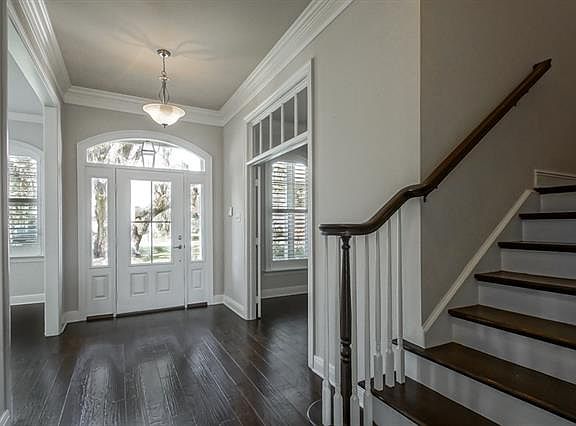 Beautiful Bedico Trace home. All the space your family needs! Flex room with French doors downstairs & a recreation area upstairs. This unique floor plan features 3 bedrooms & 2 full bathrooms upstairs, plus a beautiful master suite downstairs & a half bath for guests. There are many custom features & upgrades. Gorgeous quartz counter tops & stainless appliances in the kitchen. You'll love the wood flooring & status staircase everyone wants! The amazing front oak tree is specially lit for a twilight treat.