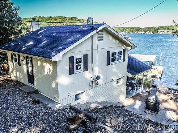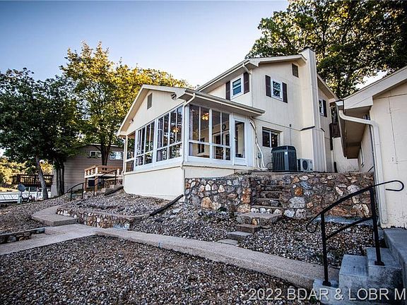 Stunning Lakefront home in great cove location on the 5 MM of the Gravois Arm. This move in ready home is ready for its next owners to enjoy all it has to offer from a quiet cove, stunning lake views, Nice updates and all it needs is your furniture. Amazing sunroom to enjoy your morning coffee with its own mini split unit to ensure comfortability. The main level boasts three bedrooms and 1 updated full bathroom. The bottom level is very open boasting kitchen and living room along with a 1/2 bath. Enjoy gathering around the fireplace. Large martini deck w/ fire place to entertain and enjoy all the lake views. Detached garage facing the lake for extra storage as well as other possibilities! Really great 2 well dock waiting for it's next owners boats to sit on! Come take a tour and make your Lake Home dreams come true.