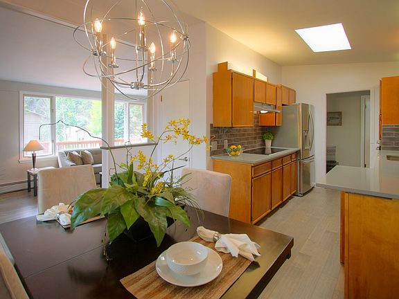 Midcentury Bungalow in the heart of North Evergreen. Hardwood floors, vaulted ceilings, and an abundance of natural light. Kitchen features gorgeous new quartz and new stainless appliances. True Main Level living with an enviable laundry / mud room with cedar lined walk-in closet, deep freezer, utility sink, and more.This flat yard backs up to the Hiwan Homestead / Heritage Grove Park and Lutheran Church. Easy access to events in the park and around the corner from popular destinations- Lariat Lodge Brewery, Main Street, and award-winning Community Theatre. RV pad with electric. Fresh blacktop on paved drive. Home warranty included for that extra peace of mind - Welcome Home!
