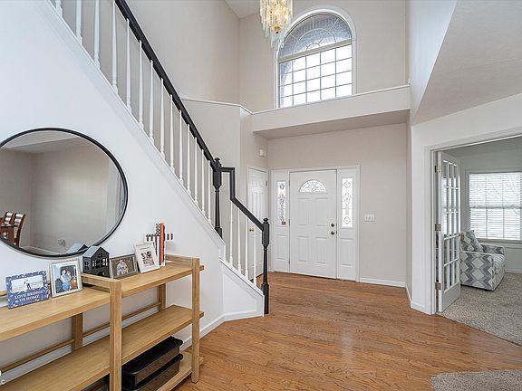 Beautiful 5-bedroom home in a desirable neighborhood with NO HOA! This stunning residence boasts a main-level primary bedroom suite with a tile shower, lvp flooring and walk-in closet. A 2-story foyer with a gorgeous staircase and 9-foot ceilings on the main level add to the elegance. In addition to the primary bedroom, enjoy a spacious layout with the main level featuring an office with french doors, a separate dining room, and a great room with a soaring 16-foot vaulted ceiling and gas fireplace. The kitchen offers an eat-in area, peninsula, walk-in pantry, and ample counter/cabinet space. Upgrades include a new water heater and updated guest bath. The four bedrooms upstairs are good in size with updated lighting and ceiling fans. Relax outside on the 16x15 deck OR 15x15 patio in the large backyard, complete with a 14x10 shed. A finished 2-car garage completes this exceptional property. Great location, just minutes to the thriving downtown Kokomo!