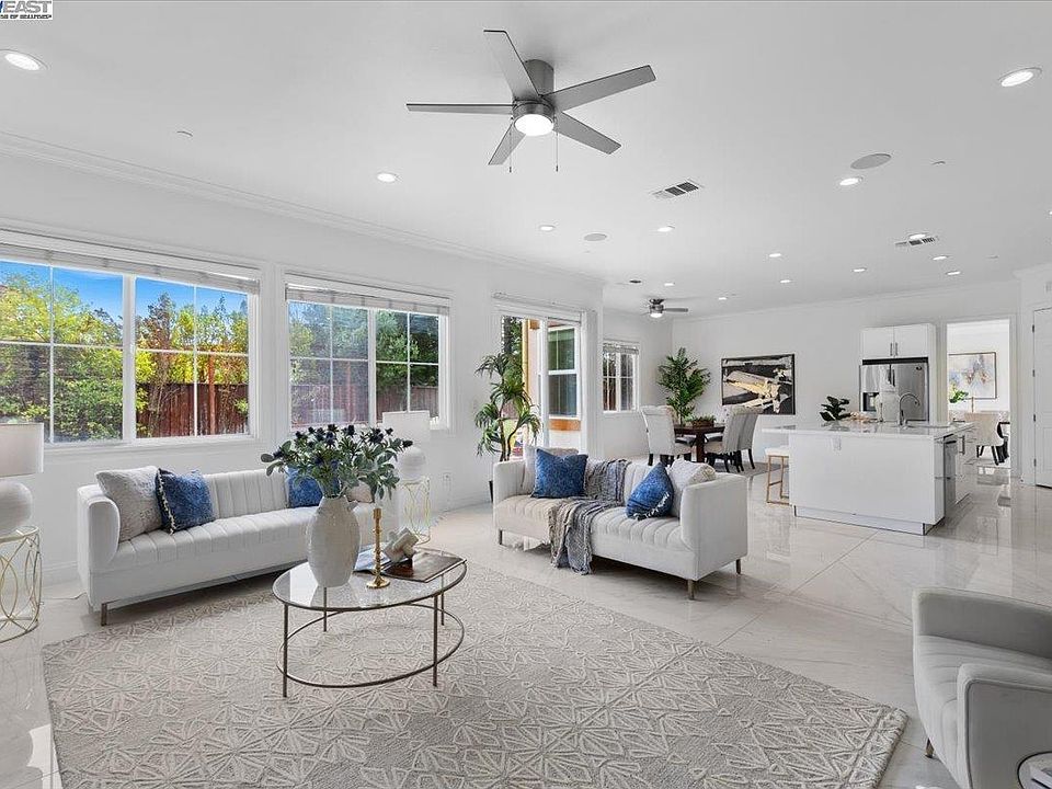 Resort-Like Executive Home with upgrades in Dublin Ranch Golf Course Step into nearly 4,900 sq ft of designer living in this 6-bed, 4.5-bath move-in ready executive home on a 9,300 sq ft corner lot, fully renovated in 2022 with $350K+ in upgrades. A bright white interior with cool white porcelain tile floors offers elegance and keeps the home cool during hot Tri-Valley summers. The gourmet kitchen features stainless steel appliances, an expansive island, modern cabinetry, and opens seamlessly to sunlit living spaces. A full guest suite downstairs, custom closet systems, recessed lighting, ceiling fans in every room offer comfort, functionality, while a beautiful low-maintenance backyard is ideal for play or entertaining. Enjoy two separate fitness spaces, an upstairs loft & garage gym both with mirrored walls, vinyl flooring and storage cabinets creates unmatched wellness space, perfect for workouts, yoga, or dance. Situated in the sought-after Dublin Ranch Golf Course community steps away from HOA amenities: pool, tennis courts, and a golf clubhouse. Just minutes from top-rated schools, Fallon Sports Park, 580/BART, and shopping at San Francisco Premium Outlets. Why buy new when you can move into a fully upgraded home across from HOA amenities, walkable community living.