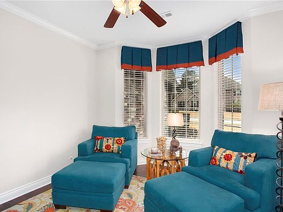 Beautiful custom built 4BR/3.5BA home. Features open floor plan, high ceilings, ceiling fans, wood flooring downstairs, crown molding, recent paint and more. Eat-in kitchen w/upgraded granite counters, gas range w/new backsplash, stainless appliances. Large master w/tray ceiling, private patio access and master bath w/walk-in closet, shower, whirlpool & his/her sinks w/upgraded granite counters. Bonus room could be used as 5th Bedroom. Perfectly located near shopping, restaurants, businesses and more.