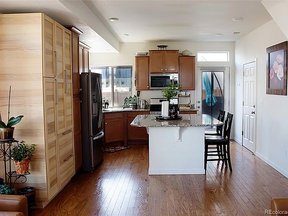 Looking for a move-in-ready home with modern charm and ample space in the sought after Meadows community! This stunning two-bedroom, three-bathroom home, built in 2018, offers the perfect blend of style, functionality, and comfort. Upstairs, you'll find two spacious bedrooms, with 2 additional bathrooms, plus a versatile flex room that can easily be transformed into a third bedroom, a cozy media space, or a productive home office. The possibilities are endless! The main level boasts elegant wood flooring and an abundance of natural light pouring in through numerous windows. The open-concept design seamlessly connects the kitchen and living room, making it an ideal space for entertaining. The oversized island serves as the heart of the home—perfect for casual meals, socializing, or meal prep. A convenient powder room is also located on this level. Step outside to enjoy the beautifully landscaped outdoor spaces. The front yard has been expertly Colorado-scaped, providing a low-maintenance and eco-friendly touch. Just off the kitchen, the private, fenced backyard. Beyond the home itself, you'll be part of the highly sought-after master-planned community, The Meadows. Here, you can take advantage of numerous parks, scenic pathways, community events, and inviting pools—offering a vibrant lifestyle for individuals and families alike. Don't miss out on this stylish and well-appointed home in one of the most desirable neighborhoods. Schedule a tour today and experience everything this exceptional property has to offer! The driveway snow removal is included, plus great area for a dog run! Open space behind home!