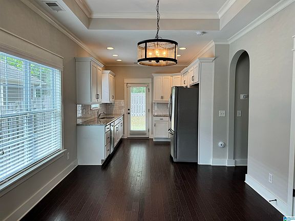 This adorable move-in ready bungalow is located on a low traffic circle in a Irondale neighborhood just off Crestwood Blvd. It offers easy access to I-20, UAB & downtown. The front porch is a perfect spot to enjoy coffee or the evening glass of wine. Step inside the spacious great room with vaulted ceiling, gas fireplace & lots of windows. The open floor plan flows nicely from the great room into the dining room & kitchen. There are hardwood floors in the main living areas & primary bedroom. The bright kitchen has white cabinetry, granite counters, stainless steel appliances & tile back splash. The primary bedroom is located on the rear of the home & has a tray ceiling with beautiful Millwork molding, the large bathroom with soaking tub, shower, double sink vanity with great storage & a walk in closet. The 2 additional bedrooms share a hall bath on the front of the house. The back yard is very private due to a buffer of trees surrounding 2/3 of the yard & a fence with a side gate.