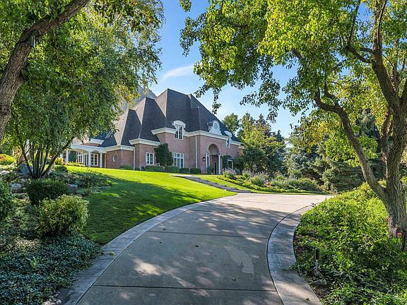 Unmatched east bench property. Very private 10,659 sq. ft. home on 2.13 acres amid mature scrub oak, firs, fruit trees & manicured landscape. (2) two story waterfalls, streams & statues compliment the serene setting. 4 car garage & shop. Room for pool, tennis/pickle ball courts. Main level master, 5 fireplaces, basement sport court. Small natural spring. 800 gallons of water storage. (1) yr old roof, new carpet, updated kitchen Square footage figures are provided as a courtesy estimate only and were obtained from county records. Buyer is advised to obtain an independent measurement.