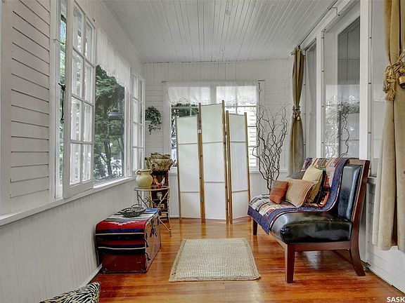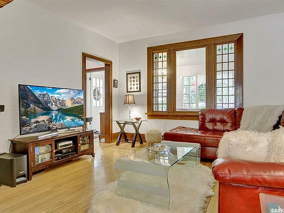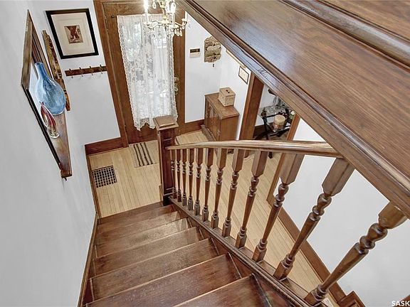 This 1431 sq ft two storey is sure to impress. Situated in the sought after community of old Lakeview, this classic character home has fantastic street appeal & has been meticulously maintained over the years. Admire the craftsmanship custom Tindel stone staircase & pass through the east facing 3 season porch with fir hardwood floors & lots of windows. The main level of this home features maple hardwood flooring throughout & 9 ft ceilings on the main. The living room with a wood burning fireplace & brick surround is the perfect spot to lounge. The dining room is conveniently located near the kitchen & has views of the back yard. The kitchen has tall white cabinetry with white quartz countertops, under cabinet lighting, stainless steel appliances, & quick access to the private backyard. Adding to the main floor are wide fir baseboards & casings as well as beautiful metal register vents from the early 1900's. The fir staircase leads you to 4 bedrooms, the primary bedroom is large enough for a king size bed & one of the secondary bedrooms offers a unique experience with a balcony overlooking the backyard. Completing this level are 2 more bedrooms & the beautifully updated 4 piece bathroom with tiled walls & floors. The basement offers tiled floors, a rec-room area, bedroom/den perfect for working out & a laundry room with a pedestal sink. Step outside to your wonderful backyard that features a two tiered deck, lower patio area, perennials, and garden area by the single detached garage. Please note the lovely chandeliers throughout the home, there are 3 on the main level, one in the primary bedroom & one in the basement den. Other value added items include: custom made Tindel stone edging around the elm tree at the front of this property, fridge, stove, washer, dryer, built-in dishwasher & water softener. Don't miss out on a great opportunity to own this fantastic home located just steps from the Legislative Building & Wascana Park. Custom made house number included.