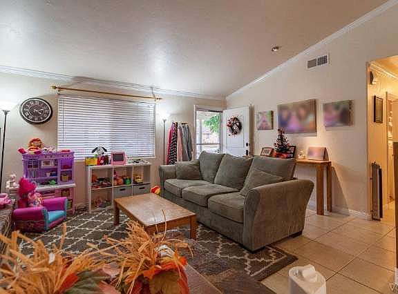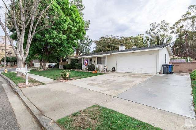 This Single Story Stonegate 3 bedroom 1 bath home is a true gem! Starting with great curb appeal, a nice corner lot and an extra wide concrete driveway. Enter through your front porch and you will notice the added fireplace with beautiful brickwork, large tile flooring, upgraded dual pane slider, smooth ceilings and crown molding. Your bright and open country kitchen has natural wood cabinets and the dining area overlooks the rear covered patio. As you walk down the hallway, you will notice upgraded raised panel doors as you enter your two secondary bedrooms and the bath that has hall access and direct access into your nice size Master Bedroom. This home also features a large rear yard and a huge RV storage area with plenty of room for your toys. Top that off with an upgraded HVAC and an enclosed Laundry room. This lovely home is nestled in the Southern Foothills of Simi Valley and is waiting for you to make it yours!