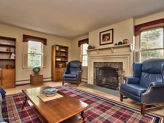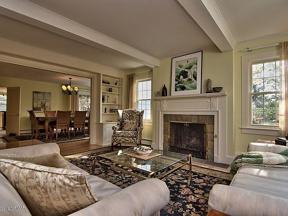 Best Value at Skytop! This gorgeous updated home originally built in 1902 sits on nearly two acres fronting the famed Skytop Lodge golf course. This spacious fully-furnished family home features 5 bedrooms and 4.5 baths. The layout is perfect for entertaining including an elegant living room with wood-burning fireplace, formal dining room, pub room, family room w/another wood-burning fireplace, updated kitchen w/butler's pantry and sunny 4-season sunroom. The 1st floor master suite features sliders to a private deck, separate sitting room, spacious bath and huge walk-in closet. There are updated windows, oil hot water heat, central A/C and a full-house generator. The beautiful park-like property has gardens, fruit trees, mature landscaping, circular driveway and a 2-car detached garage.