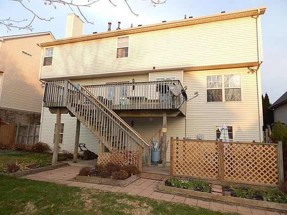 This is a builder modified Anderson model by Ball Homes. The Anderson blueprints show an upstairs "laundry room", it was changed to a full private freshly painted bathroom and the laundry room was relocated by the builder to the basement. The finished basement has a freshly painted 5th bedroom with a window, new carpet, ceiling fan, closet and renovated freshly painted full bath. The laundry room is the only unfinished area in the basement. A freshly painted remodeled half bath and finished rec room with window, 3 ceiling fans, hall closet and a ceramic tiled area where you can put in a mini kitchen if desired complete the basement. The walk out basement leads to a patio and off to the side a second; powerwashed deck built to hold a hot tub and wired for one. (Hot tub has been removed) There are 3 renovated (3 freshly painted) full bathrooms and 4 bedrooms (3 freshly painted) on the top level, all bedrooms have ceiling fans. One bedroom has a door to a walk out attic, over the garage. There are no stairs or ladders to climb. ( unique for the Anderson model ) A second attic is located in the freshly painted upstairs hallway. The freshly painted hall bathroom has an additional door from the 3rd bedroom for access from the room. (unique from the regular Anderson model) Two other bedrooms upstairs have private full baths. (unique from the Anderson plan) There is a half bath off the two story entry on the main floor. One a.c. was replaced in 2013. All new flooring, toilets, lighting, hardware, paint and faucets in several of the bathrooms 2016/2017. Family room carpeting was replaced in 2015 along with a bedroom upstairs. October 2017 new neutral carpeting in 3 bedrooms, hall and stairs going up, staircase spindles, and all exterior doors have fresh paint, The handrail was refinished and spindles painted October 2017. New roof 2017 . This is a 5 bedroom, 4 full, 2 half baths, living room has trey ceiling, crown molding with ceiling fan, dining room has crown molding, family room with built-in bookcases around the gas fireplace, ceiling fan, The freshly painted eat in kitchen has a stainless smooth top electric stove, dishwasher and built in microwave all replaced 2014/2015, grand 2 story entry, finished walkout basement, fenced yard, mature landscaping with perennials , 2 decks, 2 car garage with one opener home. The back of the home has also been modified by the builder. The basements french door was moved to be directly below the kitchens door and one window was moved to make the 5th bedroom code compliant and is different compared to the original Anderson blueprints. This is a very unique builder modified Anderson and there are no others like it! This is not your normal cookie cutter home! The decks, driveway and walkway were powerwashed August 2017. New roof September 2017. A must see!