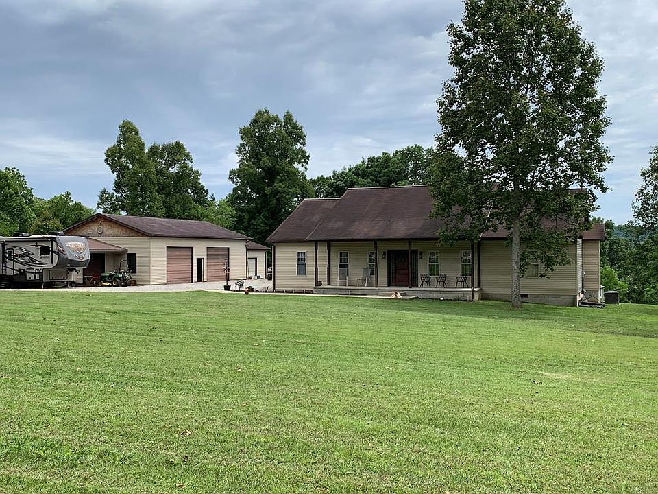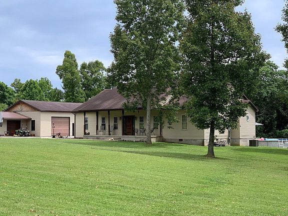 This beautiful home sits on over 6 acres you enter thr rustic front door into a oversized great room that has cathedral ceilings and western lodge lighting. On the left is your galley kitchen with real wooden cabinets and appliances. There is also an eat-in dining area and then your laundry room and hall that leads outside to the built in home garage. On the right side of the great room you have your bedrooms. The first bedroom you come to is the master suite that has its own private bath and dressing area. The master bath has a oversized walk in shower with two shower heads and a jetted tub. The other two bedrooms are good size and share a bath. At the back of the great room is a two level covered deck that wraps around an above ground pool. This area overlooks the back yard and woods. On the right side of the driveway is the large detached garage. The detached garage has 4 large bays with a work area. The garage is headed.