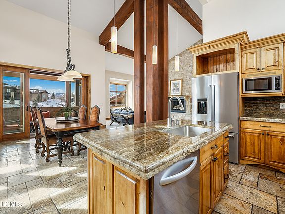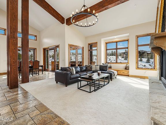 Single-family home (not 'cabin' or 'villa') located behind the gates of Promontory--incredible sunrise/sunset views on over half an acre adjacent to the private trails of Promontory out the back door. Enjoy mountain views and a radiant heated rooftop patio. Spacious layout and privacy areas. Enjoy ensuite bathrooms in each of the four bedrooms. Lovely neutral colors for decorating. Extensive rockwork in/out and impressive timber beams. Many covered decks and patios. Huge room for storage, golf simulator, or workout facilities. New appliances. New carpet. New paint inside. New exterior stain. New drive seal and overlay. Full-time resident tax fee paid (nearly half tax). HOA is $300/month. Social membership is available, but not included and would place one on the golf membership waiting list.