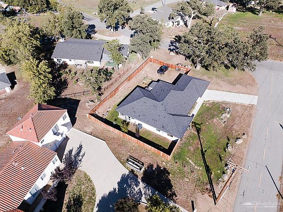 This pristine home is situated on a spacious .44 acre corner lot at the edge of a cul-de-sac in Stallion Springs! Built in 2020, this 4 bdrm, 2 bthrm property boasts an impressive open floor plan with 9 ft ceilings and upgraded 2x6 construction. An abundance of natural light filters through large windows, illuminating the living spaces, and the thoughtful design features stucco eaves with power for exterior lighting. Outside, the large covered patio is ideal for entertaining or simply enjoying a moment of tranquility amidst the mature oak trees that surround the property, and the 6 ft privacy fence with 2 access points (walk-through & vehicle access) provides seclusion. Enjoy a landscaped backyard, complete with veggie garden and a spacious 8x10 Tuff shed. A finished oversized garage with 220V electrical vehicle hookup boasts epoxy flooring and offers additional storage space and plenty of room for parking! Inside, you'll find the heart of the home, a pellet stove that not only adds warmth but creates a cozy atmosphere on cold nights. Custom cabinets with quartz counters and stainless steel appliances make the kitchen a chef's dream. LED lighting provides energy-saving illumination throughout the home. The primary bedroom boasts a huge walk-in closet, and 2 guest bedrooms feature generous space with their own walk-ins! This home has plenty of upgrades, including newer luxury vinyl flooring (LVF), a stunning new kitchen with stylish backsplash, and new ceiling fans throughout. R-19 insulation throughout the home ensures energy efficiency, while the tankless water heater provides an endless supply of hot water. Don't miss your chance to make this exceptional home your own. Termite and Septic inspections completed! Schedule a showing today and experience the perfect combination of modern amenities, elegant design, and natural beauty in a desirable location. Loan assumption a possibility at 2.75%!