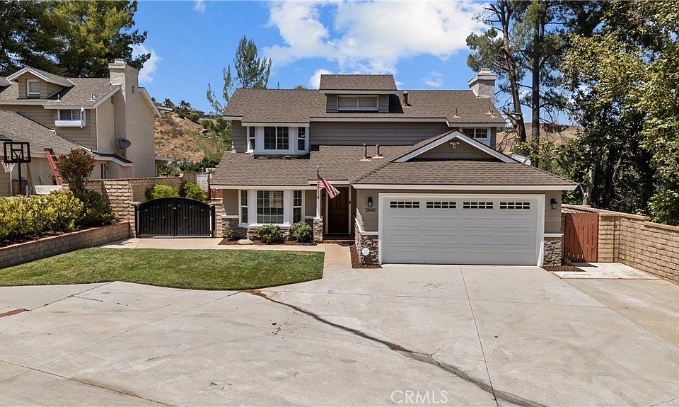 Come see this beautiful 3 bedroom 3 bathroom Castaic home. You will love the curb appeal and view, and you will see value throughout the home: granite counters and abundant storage in the kitchen, primary suite with walk in closet and gorgeous ensuite bathroom, remodeled family room with cozy fireplace and custom built ins, updated bathrooms, hardwood flooring throughout the downstairs, newer roof, ring cameras, security system, newer HVAC, and dual pane windows with blinds. This exceptional flag lot set away from the street offers total privacy and serenity with no rear neighbors. The covered patio with outdoor fan is perfect for enjoying the amazing mountain views. The low maintenance yard includes space with hookups for an RV or other toys. Freeway access is easy, and Castaic High, Castaic Lake, the Sports Complex and new Aquatic Center are all just a few minutes away. No Mello Roos or HOA to worry about. Ready to move in immediately!
