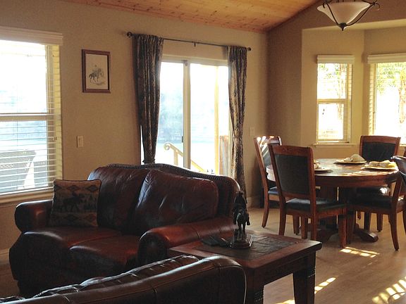 2006 Custom Home with Panoramic View of Millerton Lake in Central California. This 3 bedroom, 2 1/4 bathroom home, has granite counter tops throughout, with cabinets of African mahogany. Living room has a vaulted ceiling with a fireplace that is the focal point. Master bedroom and bathroom on the first floor, master bedroom has a vaulted ceiling and walk in closet. Master bathroom has custom tile work with a jacuzzi tub. Second floor has 2 bedrooms and a bathroom. It also has a walk in linen closet, as well as a storage closet. As you walk out onto the patio, you have a beautiful view of Millerton Lake. There is a built in bench seat, as well as a built in fountain to enjoy the lake. This is a great home for entertaining.