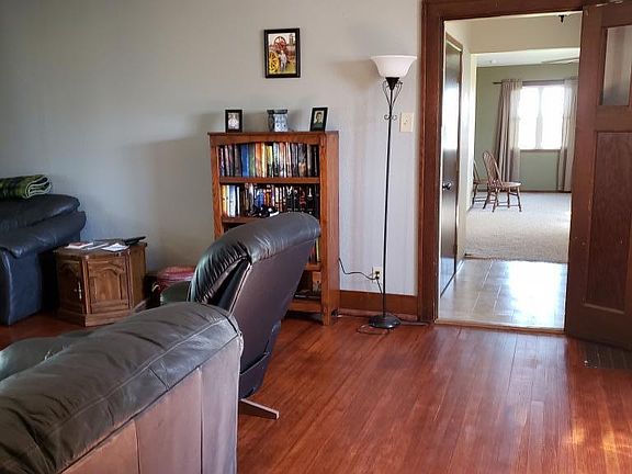 Large Family home with lots of space & updates. 5 Bedrooms (3 main 2 up) Master & a full bath, another full bath on mail & 1/2 up easily could be a full bath with tub shower.. Oak kitchen with large island for prepping, refinished pine floors in living & dining room, great older architectural features with built in bookcases, 3 season screened in porch w/maintenance free decking faces East for cool summer nights. Spacious det 2 car+ garage. Other outbuildings for storage or livestock. 2 Forced air furnaces & CA units.