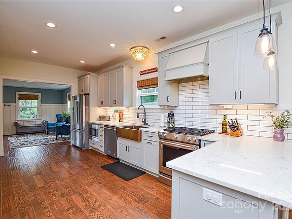 If you are looking for a Craftsman-style home in Charlotte’s popular Midwood area, then 2849 Attaberry Dr could be just what you are looking for! Taken down to the studs and lovingly rebuilt in 2018, this 1-story home has an open floor plan and handsome millwork throughout. The Chef’s Kitchen features high-end white cabinets with dovetailed and soft-close drawers, KitchenAid appliances including a 6-burner gas range and French door refrigerator, quartz countertops with a breakfast bar, designer-style lighting, copper sink, and exposed wood beams. The Primary Bedroom has an oversized shower, private water closet, and walk-in clothes closet with built-ins. The backyard is larger-than-average, fully fenced, and lined with tea olive trees. Enjoy evenings on the covered porch under a beadboard ceiling or on the adjoining brick-paver patio under the stars! The circular driveway has parking for 6. All this and UpTown Charlotte nearby!