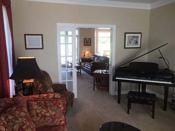 This all brick home has so much to offer. Gorgeous golf course views, an in-ground sprinkler system, a heated 3 car attached garage, granite counter tops in kitchen, marble tops in most bathrooms, a four seasons room with separate air and heated tile, a bonus room on the 2nd floor which can be used as a media room, a workout room off the fully finished rec room downstairs, a lovely master suite with large jetted tub and grand walk-in closet and balcony for your golf course viewing pleasure and finally-a heated detached 3 car garage that boasts a sports court for any sport enthusiast. WOW!