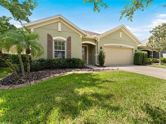 NEW ON THE MARKET! This nicely maintained single-family home is located within the highly 'sought-after' neighborhood of Stonebrier, located in the gated enclave of Sweetgrass. Beautiful Etched Glass Front Door welcomes you to this popular "Riviana" floor plan featuring an open layout with 3 Bedrooms, 2 Full Bathrooms, and a 2 2-car garage. As you enter the home you are immediately greeted with Engineered hardwood flooring that extends from the Foyer and throughout all Living areas, 2 Bedrooms, and 1 Full Bathroom at the front of the home. The living area boasts 10 ft ceilings with Crown Molding, recessed lighting, and neutral interior paint tones. The gourmet Kitchen features beautiful granite countertops with under mount sink, ample 42-inch Maple Cabinets with Crown Molding, an Island with a Breakfast Bar, all appliances including a double oven with a Convention Oven on the bottom, and a closet pantry. Separate Dining Room area. The elegant Main EnSuite features a walk-in closet, New renovated bathroom with dual vanity with granite countertops and undermount sinks, tiled Walk-in Shower with glass doors. The backyard space is perfect for entertaining and has a full privacy fence and a spacious screened lanai constructed in 2017. There is a 3-ton HVAC system that was installed in 2019. Other features include a whole house water softener, new carriage lights, sprinkler system (front and back yards), Freshly Painted Exterior and Interior, and much more. Stonebrier is a meticulously manicured neighborhood zoned for the McKitrick, Martinez, and Steinbrenner HS school district. Wonderful community amenities include a zero-entry pool with a water slide, fitness center, playgrounds, soccer fields, and much more! Don’t miss out on this rare opportunity!