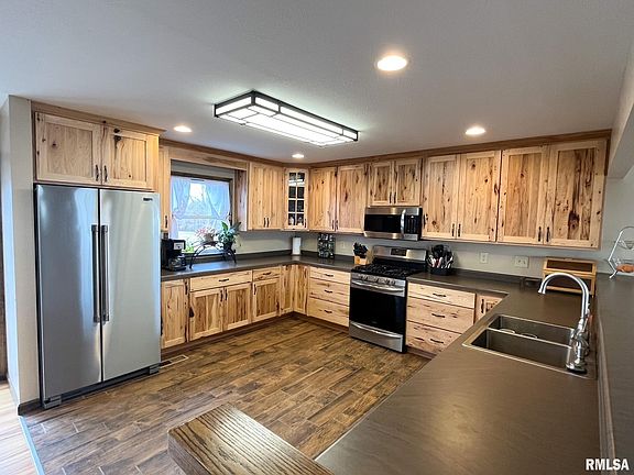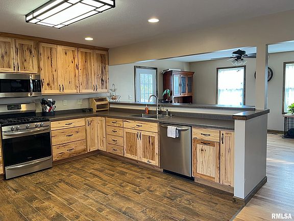 Enjoy the quiet setting of this newer build home on 8 acres that includes a pond and lots of wildlife. Many deer have been spotted crossing the property. Home is filled with natural light spilling in from the many windows. Main floor is all handicap accessible and includes one of the two master suites. Kitchen is filled with storage options in the knotty hickory Concorde cabinets. These same cabinets match thru-out. Onyx showers and vanity tops create a beautiful, flowing color palette thru the home. Flooring is a combination of 3/4" hickory, ceramic tile and carpeting. The 24 x 16 Shed with garage door is insulated. This property is being sold as-is but inspections are welcome.
