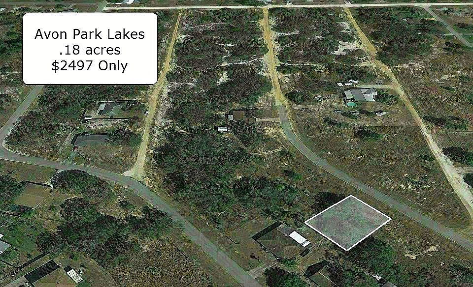 FIRST TIME BUYERS AND INVESTORS SHOULD NOT MISS OUT ON THIS OPPORTUNITY! One of the best properties in all of Highlands County! This is a unique residential/recreational property located in a peaceful area near Lake Olivia in Avon Park. This beautiful .18 acre property is zoned R1 which allows for site built homes. This is a perfect spot for a weekend getaway, rental or a full time residence. This beautiful property is within walking distance to Lake Olivia where you can enjoy a morning walk on the shore. You can also enjoy an afternoon of fishing, boating, water skiing or just relaxing. This is a very peaceful lot just 15 minutes to the boat ramp of Reedy Lake. There are 27 world class fishing lakes surrounding this property!! This .18 acre (80 feet X 100 feet) property in Avon Park Lakes Subdivision is one of the fastest growing areas in Highlands County! This property is an hour from Punta Gorda where you can enjoy the warm, crystal clear waters of the Gulf of Mexico. Hit the links of River Greens Golf Course, and Highlands Ridge Golf Course. This beautiful lot has easy access to Port St. Lucie, Sarasota, Lakeland and Tampa. The land is flat, dry, level, and ready to build on! It's no wonder more and more people are calling it home! Please Contact The Owner Directly for all questions on this property. You may call, text or Zillow message (be sure to check the box next to owner) - Contact details are below the agent information. landstore property ID : 2640 Property Title: Free & Clear =====PROPERTY FEATURES===== Acreage --.18, Subdivision - Avon Park Lakes, Location – Avon Park, Lot Dimensions --80 feet X 100 feet. Parcel Number : C-01-33-28-010-0000-9612. You can find the property on Google by Latitude: 27.638999 and Longitude: -81.553639 Similar lots right now are selling for $7,000 and up. OWN IT TODAY FOR JUST $2,497 (60% below market value!) Contact the owner directly for more info on the property and available amenities. Please see my number below the agent information.