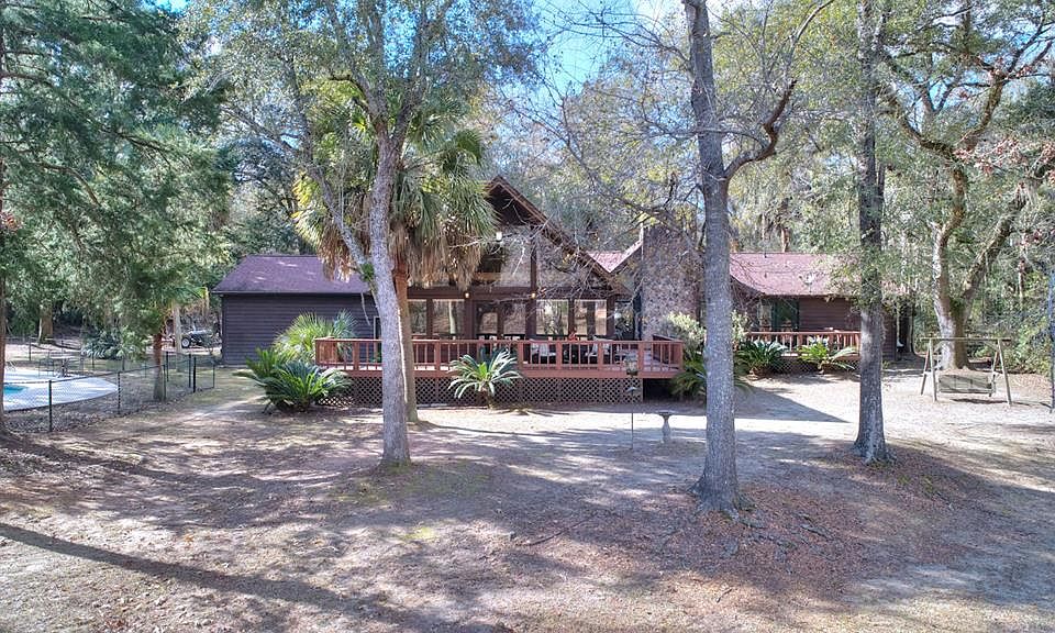 Beautifully located on Kinchafoonee Creek. Follow the 1/4 mile winding paved driveway with palm trees to this gorgeous custom built 2800 sq. ft. Cypress home nestled on 6.57 wooded acres. Enter thru the entry door leading to a huge Living Room / Dining Room with vaulted ceilings covered in stunning knotty pine with huge knotty pine beams and custom knotty pine custom cabinetry. Hardwood floors and tile thru out home. Massive entrance exposing a huge Stone Fireplace along with a gorgeous view of the wraparound deck overlooking the Creek. This home featured 3 bedrooms with a separate remodeled bathroom for each bedroom. The primary bath has a huge tiled shower with glass doors and walk-in closet. Other features are custom cabinetry , blt. in Stereo system thru - out home and soft water system. The Family Room boasts a panoramic view of the creek. Kitchen has new appliances including a 5 burner gas stove with an Air Fryer capability. Outside on the Creek is a Cedar Boat house with a drive in area with a motorized boat lift. The Boat House/camphouse sits out 10 ft. above the water with a covered balcony, railings and ceiling fan. Enjoy the Kidney shaped gunite self cleaning pool with new pool pump,,black chain link fencing, and cool decking. Other amminities include new architectural roof, freshly painted interior and exterior, new 25 x 30 Chicken coop with water and electricity. There is a three car garage with lots of blt. in cabinets and shelves for plenty of storage. Call today for a tour of this beautiful home. This beautiful property is back on the market due to a lack of funds.