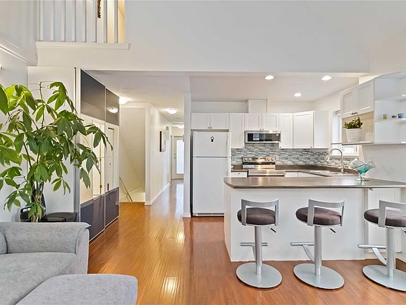 Corner unitNew backsplashHard surface floorsUpdated bathroomSoaring vaulted ceilingsEat-up kitchen barSmart storage
