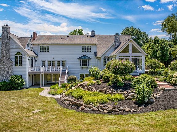 Welcome to this charming French Country Cape nestled on 2.5 acres in Bath Township, Ohio. This well-maintained retreat features exquisite finishes and amenities, perfect for someone seeking elegance and carefree living. As you step through the front door, you are greeted by all the warmth and ambiance this home has to offer! A step-down formal living room includes many built-in storage areas, a lovely gas fireplace with doors to the large balcony deck. The formal dining room highlights additional built-in storage and pocket doors to enter into the grand, vaulted great room with beautiful woodwork, a stone fireplace and large windows allowing natural light to shine in, offering views of the English gardens. Relax in the vaulted sunroom with a book and you'll soon be off on an adventure. The kitchen blends modern convenience with country charm with a fireplace, pantry, and spacious granite countertops making meal prep a breeze. The sunny eating area wows with wall-to-wall windows and window seats and a door to the gardens. Retreat to the stunning, 1st floor owner's suite, featuring 18 ft ceilings, a fireplace, en-suite bath, a loft study area and French doors that open to the balcony deck space. Great for your morning coffee! A private laundry area and a walk-in closet for two. There are three additional bedrooms on the 2nd floor with an additional laundry room and two more full baths. Perfect for guests. The walkout lower level will not disappoint, highlighting a recreation room with adjoining family room that opens to the patio, a den for relaxation, or a possible 5th bedroom, an office space with French doors and a full updated bath. A two-car attached, plus a two-car detached garage with a walk up to the second floor. This would be an excellent additional living space to be created or to be used for an extra storage area. This garage is a must see for any car enthusiast too. Ask your agent for a full list of updates and schedule a tour today. You will Love it!