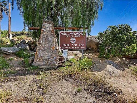 One of the best locations in Hemet. This gorgeous property sits on top of a hill with a panoramic sunset view overlooking diamond valley lake. Located just feet away from Simpson park entrance where you have access to hiking, biking and horse trails This home is very expensive, perfect for a large family or you can have guest quarters for your family or use as a rental. Situated on the opposite side of the home that has its own entrance. This gorgeous home has views from every single window on the back of the home. It features five bedrooms and four bathrooms The office could also be a sixth bedroom. The kitchen has a large bay window but you can gaze out and look at the panoramic sunset view. There is an island perfect for entertaining and the kitchen also has a large walk-in pantry for all your food storage. There is a built-in bar area off the kitchen. DO you have horses? There is also plenty of room for your horses on the bottom level that's completely flat. (follow the trail behind the home to the bottom) You can hop on your horse and ride out to Simpson Park where there's miles and miles of trails and enjoy a peaceful ride through the poppy fields and beautiful scenery. This is a custom built home and it's truly a one of a kind find. As you sit on top of the hill you will feel like you own the whole city. They are beautiful snow. Capped. mountain views. As you pull up to the property you will notice the gated entrance with the long driveway leading you to your gorgeous home and panoramic views. This home can be seen from afar nestled on top of the hill. Just minutes away from Diamond Valley Lake, Simpson Park, Golf course and Hemet High school. This is on the edge of state property and no homes will be built behind you. Priced to sell so this one won't last long!