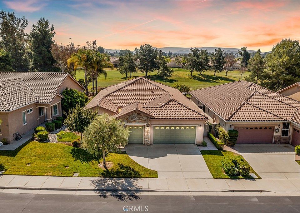 The charm of this residence extends beyond its walls, as it sits gracefully along the 13th hole of the prestigious Menifee Lakes Golf Course, offering breathtaking views and a tranquil ambiance.