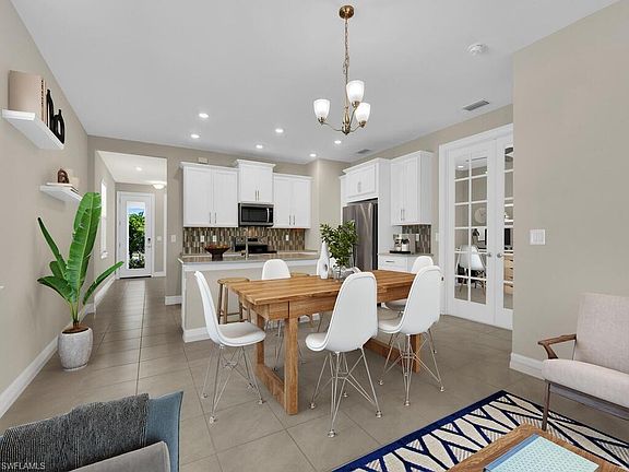 Nestled in Seasons at Bonita at the end of the cul-de-sac lays this impeccable, light/bright 3 bed & 2 bath home w nothing to be desired. From the front door, the foyer will lead directly left towards the laundry room, 2 car garage, & hall closet. Down the foyer is the 1st bedroom & full bath w tub on the left w the kitchen directly ahead. The chef in you will be happy to find all SS appliances, double sink, quartz counters, tile backsplash, & large walk in pantry. The dining/living area, adjacent to the kitchen, are large in size & designed w entertaining in mind. The 3rd bedroom opens up from gorgeous French doors. The primary is large in size w double vanity, walk-in shower, walk-in closet/water closet. The enclosed lanai is private w views of beautiful landscaping & grass area to play in from the sliding doors, & water hookup for a outdoor kitchen vision! Convenience is enhanced w overhead storage in the garage, paver driveway, tile throughout the living area, carpeting in the beds, Moen faucets throughout, manual storm shutters, alarm system, & 10 ft ceilings. The home is close to the community amenities such as pickelball, community pool, tennis, gym, clubhouse, bocce