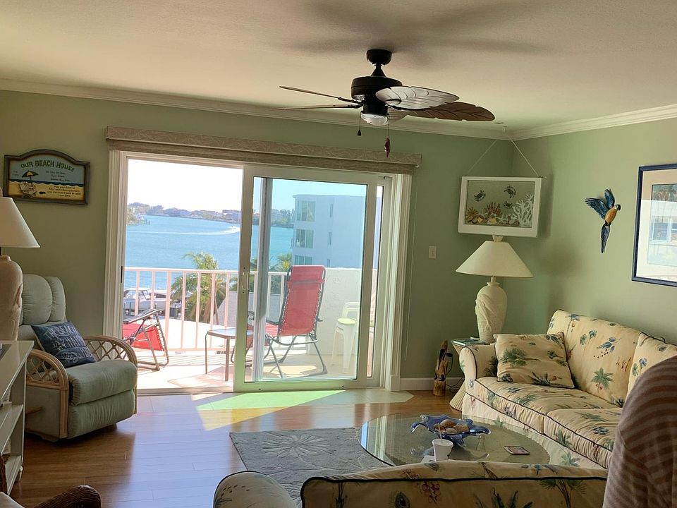 Beautiful condo unit 405 is one of the finest units at the St. James. 1055 sq. /ft., Open bright and breezy floor plan. NEWER HIGH IMPACT SLIDERS. A/C and Handler replaced in 2012. This unit is ready to move in and start living life in Paradise. A spacious Kitchen with good and plenty storage also includes a walk in pantry. A Spacious balcony looking towards the Intra-coastal and west to the Gulf of Mexico horizon. Plenty of Closets. Additional outside storage space. A convenient assigned parking Space. Additional amenities include: waterfront gas grills, a heated water front pool, a 45 foot community boat dock, and a lighted fishing pier with running water and a cleaning station, laundry facilities, fitness area, Lounge, 2 pass key elevators and visitor parking. This complex is a couple of blocks from the Treasure Island beaches and just 1 small block from the village of Treasure Island. A real nice place in the town of Treasure Island. Down the elevator and into town you go. Banks, post office, fine restaurant's, and the finest beach in Florida. Thank you.