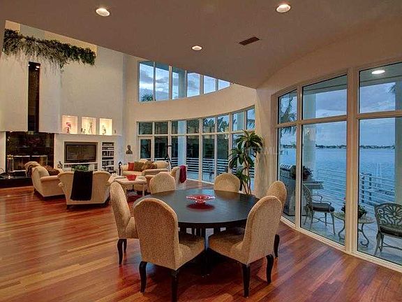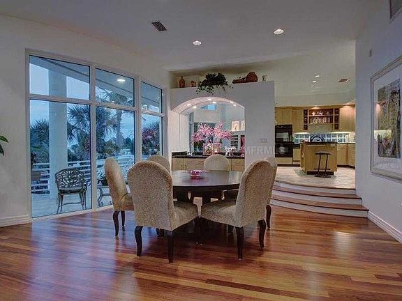 Under Contract; taking backups. Simply breathtaking! That is what you will say the moment you enter this extraordinary contemporary home that offers a masterful design and uninterrupted water views with floor to ceiling windows that provide an abundance of natural light throughout. This predominantly block constructed, luxury home offers exceptional quality and design details including all new hurricane rated windows, an elevator shaft, stunning Brazilian cherry hardwood floors, cathedral ceilings, and so much more. The desirable open floor plan is excellent for entertaining with an expansive great room, cathedral ceilings, built in bar, an elegant wood burning fireplace and expansive windows that connect the indoor/outdoor spaces and many waterfront terraces. The stunning custom kitchen offers seamless maple cabinets topped with Black Galaxy granite, double ovens, Dacor cooktop, pantry, appliance drawers, dumb waiter and eat in area overlooking the water. Upstairs offers a spacious loft office with endless water views as well as a private master suite with covered balcony and luxurious master bath that features polished stone finishes, soaking tub, separate shower and dual vanities. Walk a short distance to the sandy beach and finish your day relaxing in the gorgeous saline pool and heated spa. Plenty of room for your water toys at your own dock with lift and deep sailboat water!