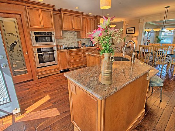 Uniquely special contemporary home extensively renovated in 2012 and beautifully maintained. The open floor plan is oriented to a fabulous rear deck overlooking beautiful gardens with fenced yard and full drip irrigation while the multi-level design allows privacy throughout the home. The extensive renovations in 2012 include wide plank, hickory engineered floors, gorgeous custom cabinets, granite tops, upgraded appliances, trash compacter, sizeable pantry with custom door, center-island and custom built-ins with wine chiller. The four bedroom design has a first floor den/ office that could be a fifth bedroom. The home is situated on a 60' x 110' lot with bay views and direct access to the 48th Street beach path at the end of the street. Other amenities include newer HVAC systems, 75 gallon water tank, full exterior staircase from second floor deck, garage, separate storage building, numerous built-in storage areas, powered awning, power vented crawl space, family room with built ins and desk, beautiful Hunter Douglas window treatments, quiet garage door opener and sensational gardens with mature plantings.