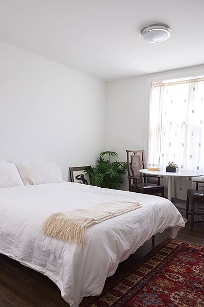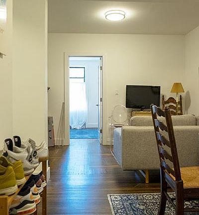 A gut renovated pre war with brand new kitchen with all full size appliances. There is one XL bedroom that can more than comfortably fit a king bed. The other bedroom is medium-size and can fit a queen bed. Ample living and dining space, separate from the kitchen. Great closet space (big closets in each bedroom, plus linen closet and coat closet in the main living areas). Unit is rear facing in a large coop style building with elevator (however, we're on the 2nd floor near the stairs, so rarely ever use it). The apartment is 2 blocks from lovely Eastern Parkway and in easy walking distance to the 3, 4, and 5 trains.