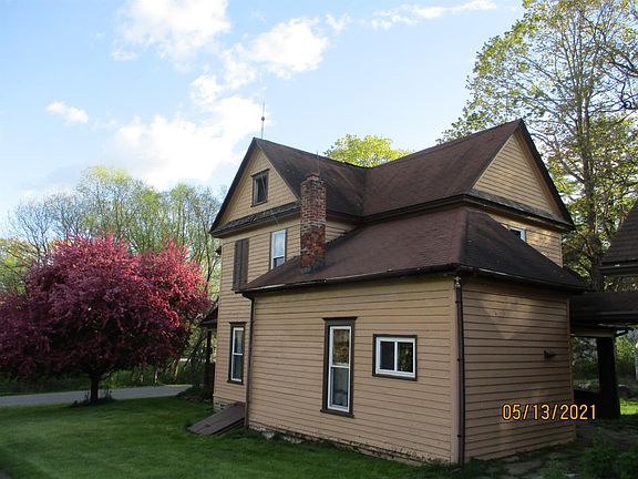 Charming 2 story home with 3 large bedrooms and 2 baths on 3/4 of an acre on a quite country road. Property is dotted with beautiful trees and perennials. Nice blacktop driveway leading to an oversized two car garage with a second story for storage. Newer storage shed is on the property near the garage. The home has a rocking chair porch to enjoy your view of the golf-course across the way. The home has an open floor plan with large rooms. Updated kitchen and newer appliances. Beautiful woodwork and wooden doors. This won't last long call for your showing today.