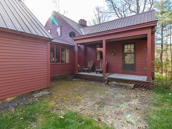 This enchanting 1800s center-chimney, cape-style home stands as a testament to New England’s timeless architecture. Privately perched atop a rise on 16.3 acres at the end of a town-maintained road, with no neighbors in sight, this home is full of historic charm without sacrificing modern comforts. The rustic wood accent wall adds a warm complement to the white cabinets and dark soapstone counters in the updated kitchen, while the red gas stove adds just a touch of spice. Beyond that is the pantry/laundry room that leads to the formal dining room. Here the soul of the home, a stunning Rumford fireplace complete with a crane and kettle, takes center stage. The dining room also provides access to the main floor primary bedroom, an office/guest room, and full bath. Crisp white wood paneling topped by tone-on-tone hand-painted and stenciled walls creates a feeling of grace in the living room, which also features a fireplace with a glass-front soapstone woodstove insert. Upstairs you’ll find 2 generously sized bedrooms and a ¾ bath. The attached garage leads into the front entry, and covered porches shelter the front and back doors from the weather. The land itself, with a combination of wooded and open areas, year-round streams, and gardens, would make an ideal home for animals, and offers the chance to extend the present garden areas. Located 5 miles from I-91 and close to all local services and amenities. Take a step back in time and discover the allure of this vintage home.