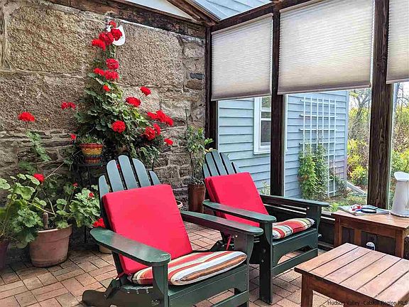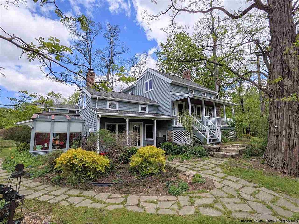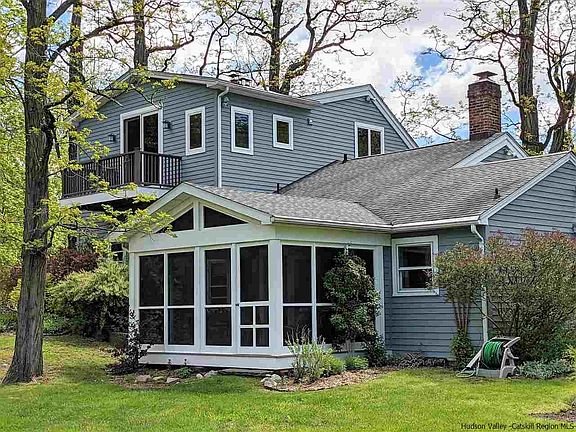YOUR OWN PRIVATE SWIMMING POND WITH DOCK! This home offers a bit of everything for everyone. Located at the end of a long private driveway, you will know you're home from the moment you walk down the stone walkway with Shawangunk mountains and pond views as your backdrop. Enter the home through stone porch, perfect for morning coffee while enjoying the lovingly maintained perennial gardens. Light-filled, eat in country kitchen with access to sunroom for mulitple dining options. Sunroom also features mountain and pond views. In the fall and winter months enjoy the magnificent colors of winter sunsets here in the valley and then cozy up to the den's wood burning fireplace. Walking up to the second floor you will find yourself enveloped in nature. Nearly floor to ceiling windows filled with picturesque mature growth trees and blue skies. It's absolutely stunning! There is a rocking chair porch off the living room where you can sit among among the trees and enjoy a good book. This level also features 2 ample bedrooms, a full bath and laundry. The master bedroom en suite makes up the entire upper level. It features cathedral ceilings and includes a large sitting room, full bath and private deck with mountain and water views. This home really is an oasis, you will feel like you're living on vacation. Take a walk around the pond, swim or fish. The great lawn provides room for outdoor gatherings and games. Patio, porches, and lovely gardens, provide so many ways to enjoy the serenity of this private setting. And when you venture from home you are moments away from all the Shawangunk Valley has to offer. Wineries, Breweries, Farm Stands, Hiking, Biking, Climbing, to name a few. It's a lovely way of life! Schedule a showing today and make your way home!