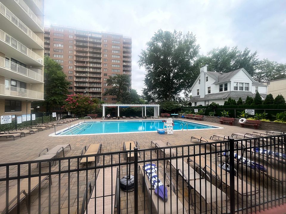NO BROKER's FEE! Beautiful, high rise, luxury studio available immediately. All utilities included and parking fee. Brand new carpeting, stainless steel appliances and gorgeous views. 24 hour doorman, gorgeous pool and garden area. Laundry on site. Building has great location close to Route 3 and NYC bus and train transportation. Looking for one year lease. No agent fee! All utilities included. Parking fees included (one spot). Looking for one year lease. $75 non-refundable application fee. Small cats and pets allowed. No smoking. Security deposit equal to one a half months rent. This beautiful large, luxury studio on the 15th floor affords amazing views of the pool! Stainless steel appliances. Great common areas in building and laundry room! Bus to NYC right outside the building. Beautiful park close by.