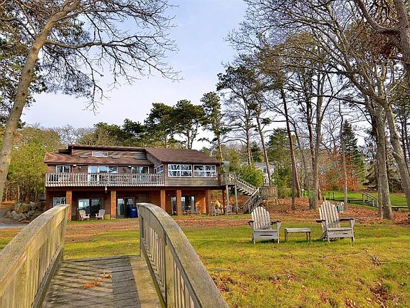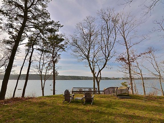 WATERFRONT HOME w/ 122ft Dock and 100ft of Beach. This is the house for Entertaining! Fabulous, Waterfront location w/Wonderful sunsets, on just under an acre of land, rolling down to the water. Floor plan designed to take advantage of its location, abounding w/water views. Main level, with soaring ceilings, is comprised of large living, dining & sitting area w/custom kitchen & sliders leading onto a huge mahogany deck, w/full views of the Lagoon. First floor Master Bedroom has views over the Lagoon, Ensuite bathroom & Private Enclosed Porch w/Separate Entrance & direct access to Mahogany Deck. 2nd Master Suite on lower level w/full view of the Lagoon, Additional Living Room, Ensuite Bathroom & 3 sets of sliders to huge porch. Third floor is a Unique sleeping area w/Third Bedroom, w/Ensuite Half Bath. Super 500 sq.ft. Detached Bedroom used as Media Room, w/Projector TV & Retractable Screen. Bathroom may be added. 4 Bedroom Septic - 2014. Contents may be purchased separately.