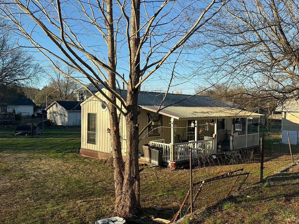 This cozy 1-bedroom, 1-bath tiny home offers 525 square feet of efficient living space with vaulted ceilings in both the living room and bedroom, creating an open and airy feel. The kitchen includes a refrigerator and stove, and washer and dryer are included. The bathroom features a walk-in shower. Situated on a nice-sized corner lot, the property also includes a block outbuilding for extra storage or workspace. Conveniently located near the Hiwassee River with community river access, this home is a great opportunity for affordable living or investment potential. USE CAUTION WHILE WALKING ON THE INTERIOR FLOORS, THERE ARE SEVERAL AREAS WITH SOFT SPOTS. QUOTE OF $9,050 TO REPLACE THE SUBFLOOR & FLOORING. HOME SOLD ''AS IS''. Call today to see this home!