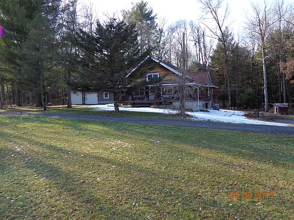 Log home, set on 6 acres, partly wooded, plus 50ft right of way. 3 bedrooms, 2 bath, Large open kitchen, breeze way between Large 3 car heated garage. Public water & sewer. Unattached pole shed with shop. Last Photo is of our property and right of way.