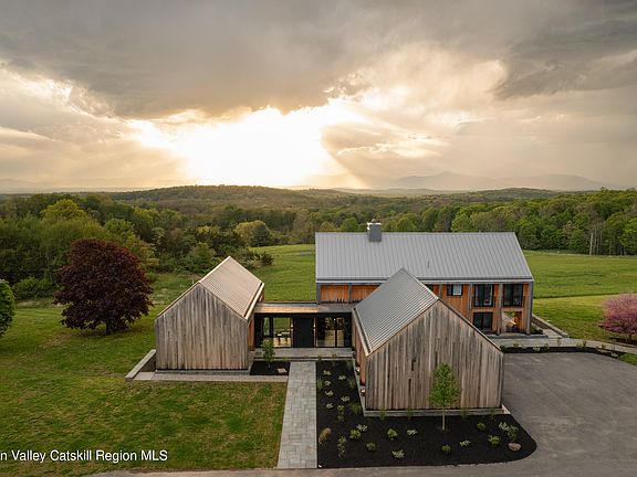 Embrace modern luxury and breathtaking views of the Catskill Mountains from this stunning masterpiece designed by award-winning architect Aron Himmelfarb. Set on 23.5 acres of rolling farmland evocative of the Tuscan countryside, this tranquil oasis is only minutes from the Hudson Valley's most desirable villages and cultural destinations.