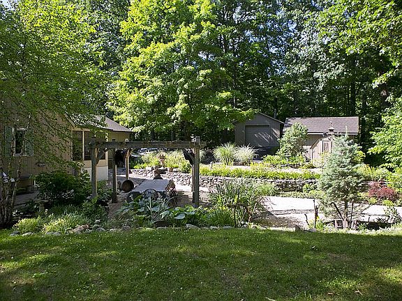 Located in the picturesque Hudson Valley, this is well kept unique ranch-style home with a fully finished basement located on a scenic wooded lot. Custom moldings throughout. Gardens in front and "Tuscan Hideaway" in the back yard, with a 22' x 16' pergola and an in-ground gas fueled fire pit. 2 car attached garage plus two additional garages, one with heat and 220V service. Substantial driveway with ample off-street parking for large family events. (also includes garden tractor with grass-leaf vacuum and 42" snowblower attachment!) Secluded, yet convenient to Metro North, I-84 and NYS Thruway, as well as regional shopping areas.