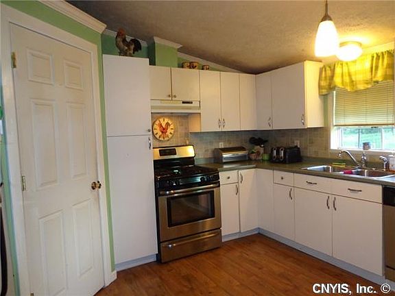 Terrific deal on this 3 bdrm, 2 full bath home on over an acre of private lot. Eat-in kitchen, master suite on one side of the house, and two bedrooms and full bath on the other. 1st floor laundry, living room, deck and shed/garage for additional storage. . Very open concept with cathedral ceiling. This home is a must see. Very deceiving from the outside. Priced below assessment. Owners will consider all reasonable offers. Taxes are shown without STAR exemption.