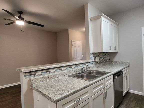 Off-street parkingDurable hardwood-style vinyl flooringSleek white cabinetryMain-level bedroom