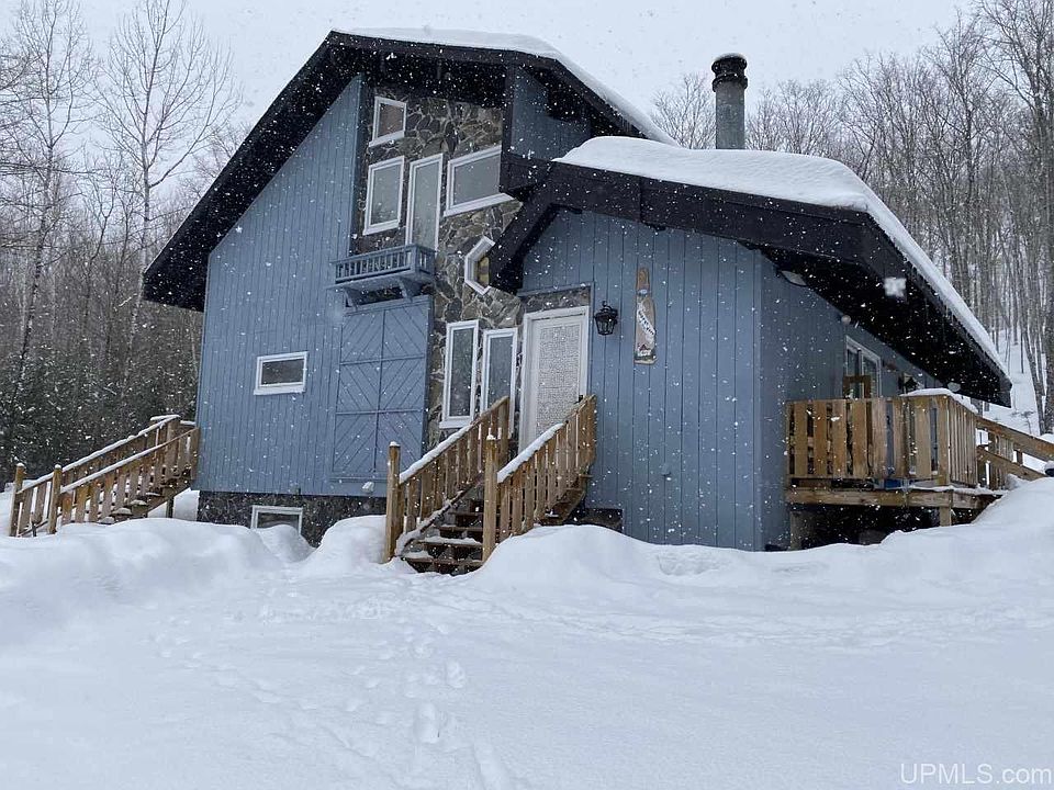 With 8 bedrooms, 4 baths, 2 saunas, and multiple other sleeping areas, this two unit chalet offers unlimited options. It is currently running as an established business, but you could easily live in ½ and rent the other or make it into a single family home. Both units come fully furnished. There is a separate wood burning fireplace and sauna in each unit. The chalet has had many upgrades including some new roofing, two new furnaces, a hot water heater, and re-poured basement walls. Electrical is 200amp. The chalet is just around the corner from Ski Brule Resort but, surrounded by woods making it the perfect spot to experience some of the best things the U.P. has to offer.