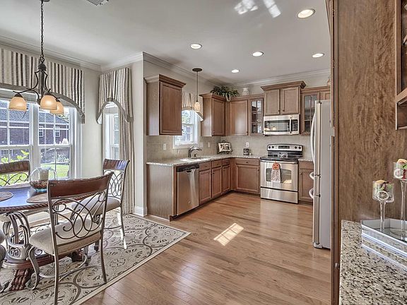 - Kitchen: Counter Tops-Granite, Eat In, Bay Window, Floors-Hardwood, Backsplash-Tiled, Recessed Lights, Cabinets-Glazed