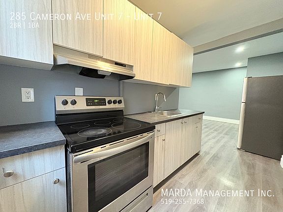 Experience modern living at its finest in this fully remodelled 2-bedroom, 1-bathroom apartment at 285 Cameron Ave, Unit 7, located in Windsor's vibrant West End. This stylish unit features a spacious living area, perfect for relaxation and entertaining, and two modern bedrooms with ample closet space, offering comfortable personal retreats. The contemporary kitchen boasts brand-new stainless steel appliances, including an electric stove and full-sized fridge/freezer, paired with sleek cabinetry for a chic and functional design. Enjoy the convenience of secure building access and coin-operated laundry facilities in the basement, with street parking available for residents. Situated at the corner of University and Cameron, this prime location puts you within walking distance of the University of Windsor and just a block from Windsor's scenic waterfront. With gorgeous modern laminate flooring, fresh paint, and updated fixtures throughout, this apartment is the perfect blend of style and practicality. Tenants are responsible for hydro utility costs. First and last month's rent, along with a credit check, are required. Professionally managed by MARDA Management, you'll benefit from reliable service, a 24/7 maintenance line, and easy rent payment options. Don't miss the chance to call this beautifully updated apartment your new home! Coin Operated Laundry Fresh Paint Laminate Flooring New Countertop