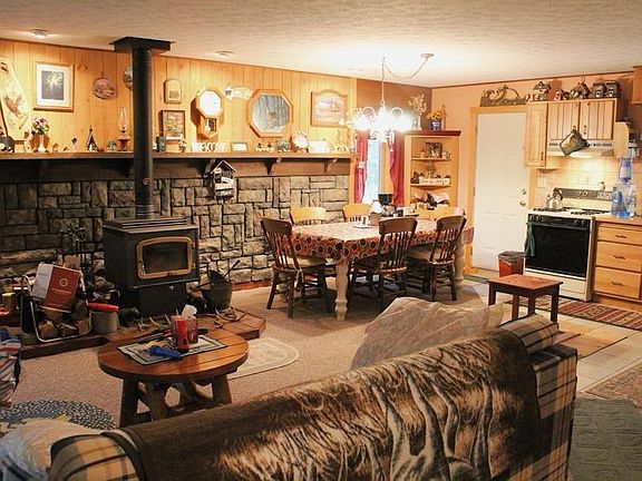 This Must Be the Place! Tucked away in the heart of the woods, this serene and secluded camp offers the perfect escape on approximately 10.5 acres of natural beauty. Wander along unique moss-covered paths that wind through the forest, or relax on the cozy, covered porch and listen to the soothing rhythm of rain on the roof. The well-maintained cottage is warm and inviting, featuring a wood stove for chilly evenings and the perfect outdoor fire pit to gather around under the stars. Peace, privacy, and charm await — don't miss out, call today!
